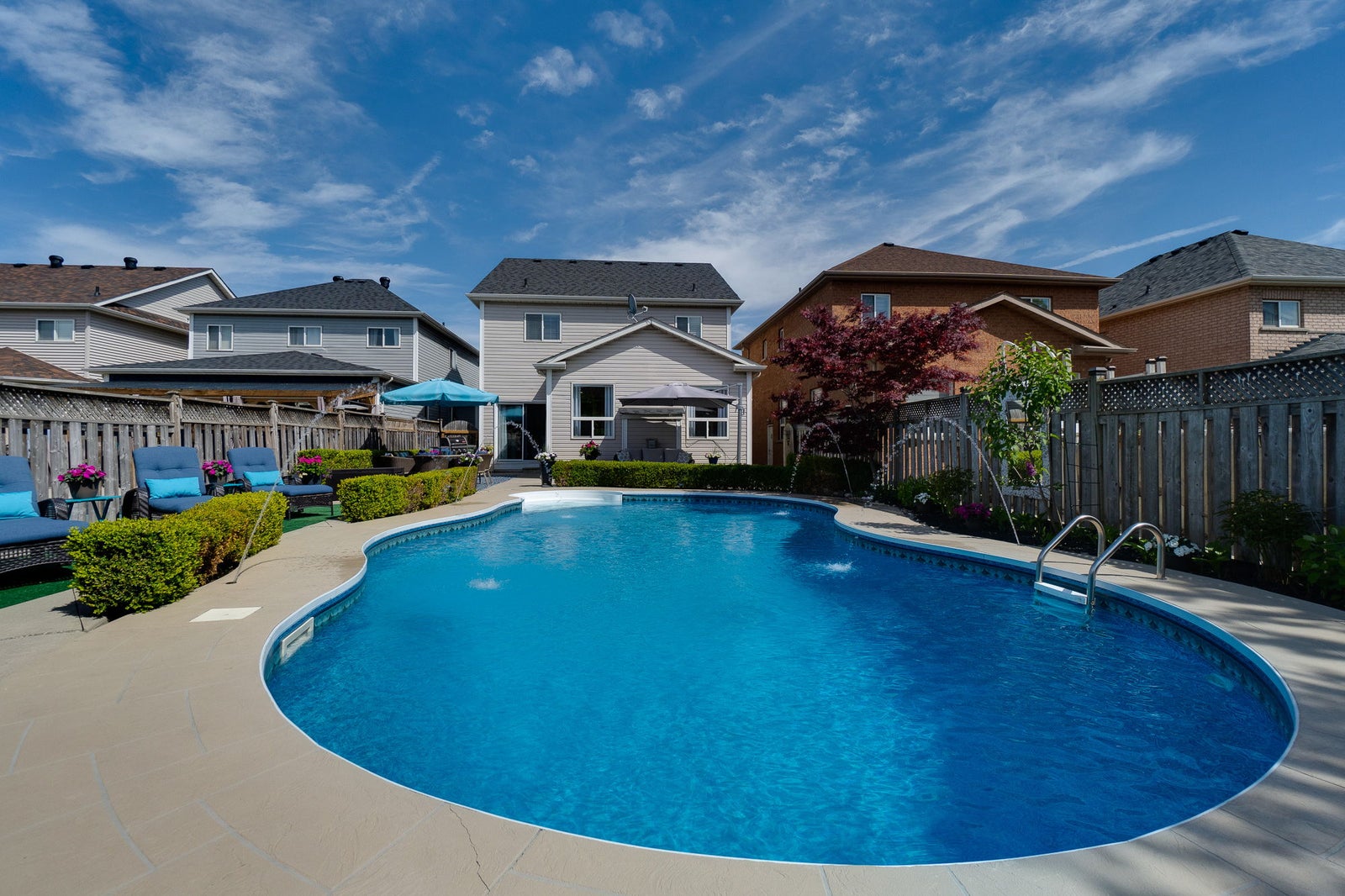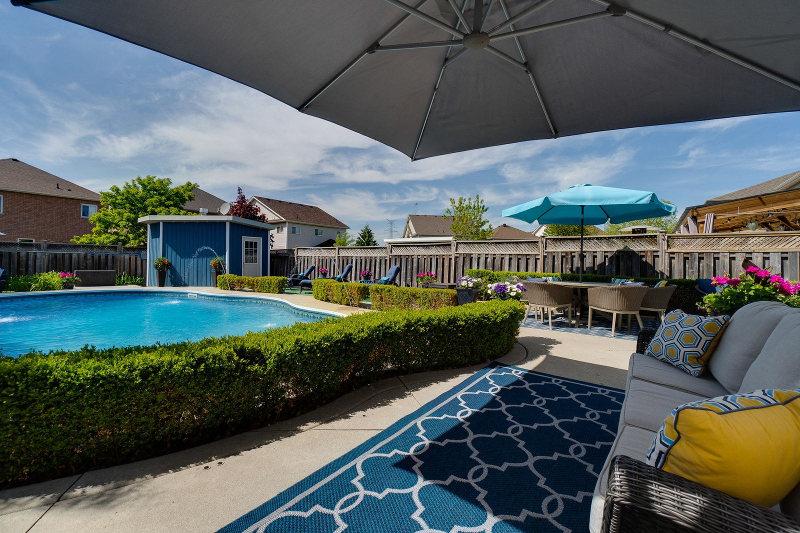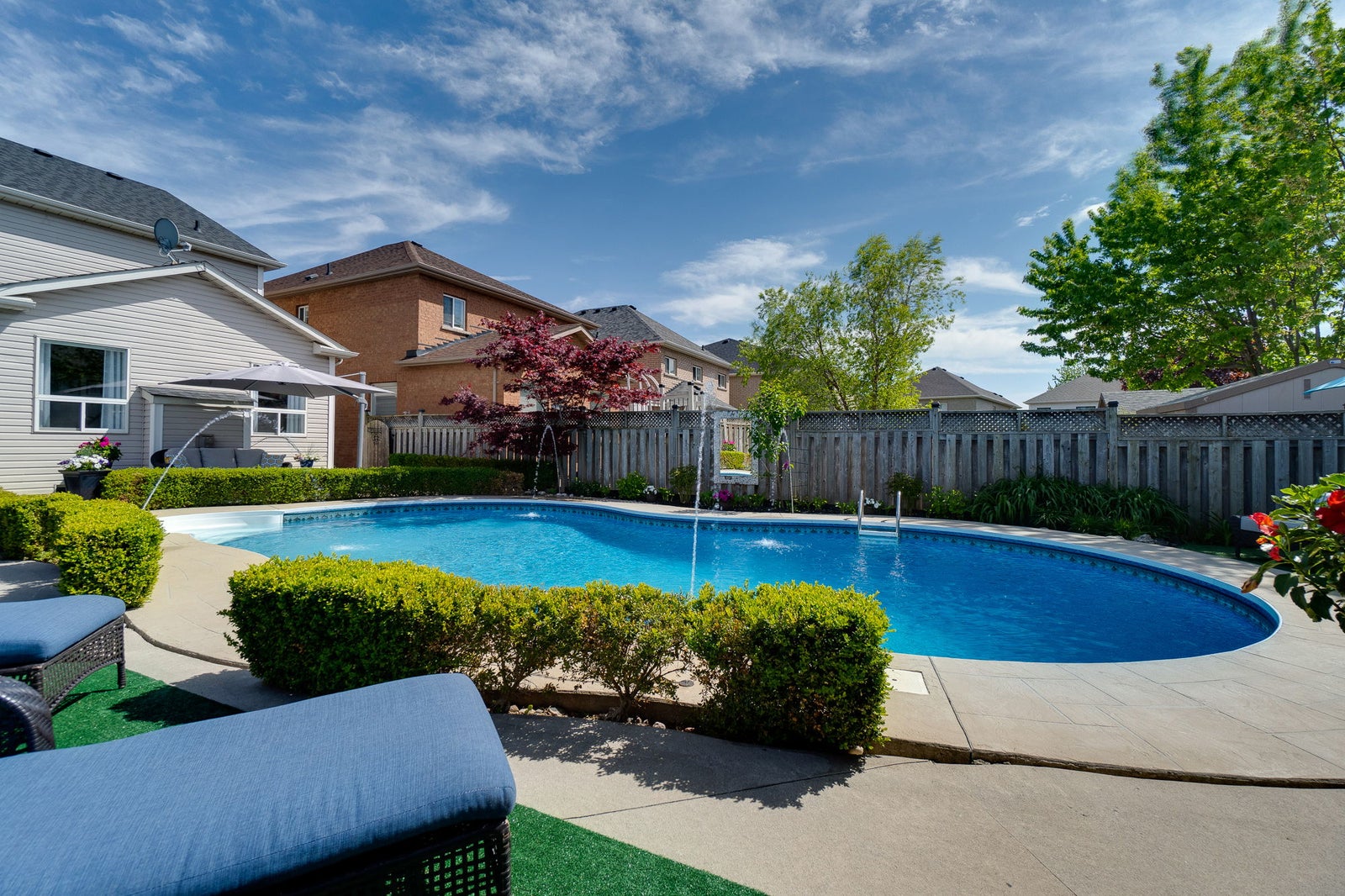 Upstairs you'll find a generous primary suite with sitting area, balcony, walk-in closet, and 4-pc ensuite, plus 3 more roomy bedrooms and a main bath. The finished basement adds a 5th bedroom, rec room, second living space, 3-pc bath, and a cozy home office nook.Enjoy summer in your private backyard with a heated pool, fountains, and space for a hot tub on a 140' deep lot. Conveniently located near schools, parks, shopping, GO transit, and Hwy 401.