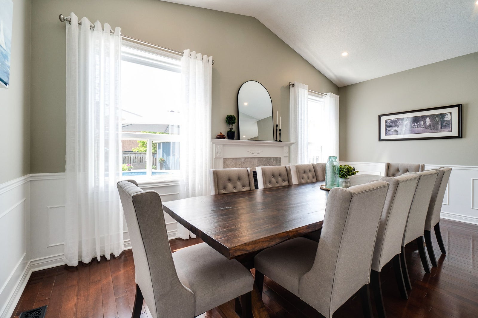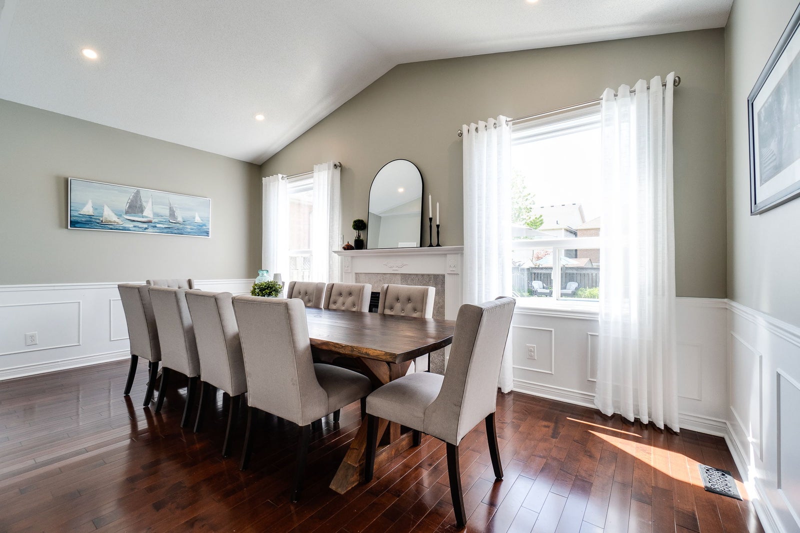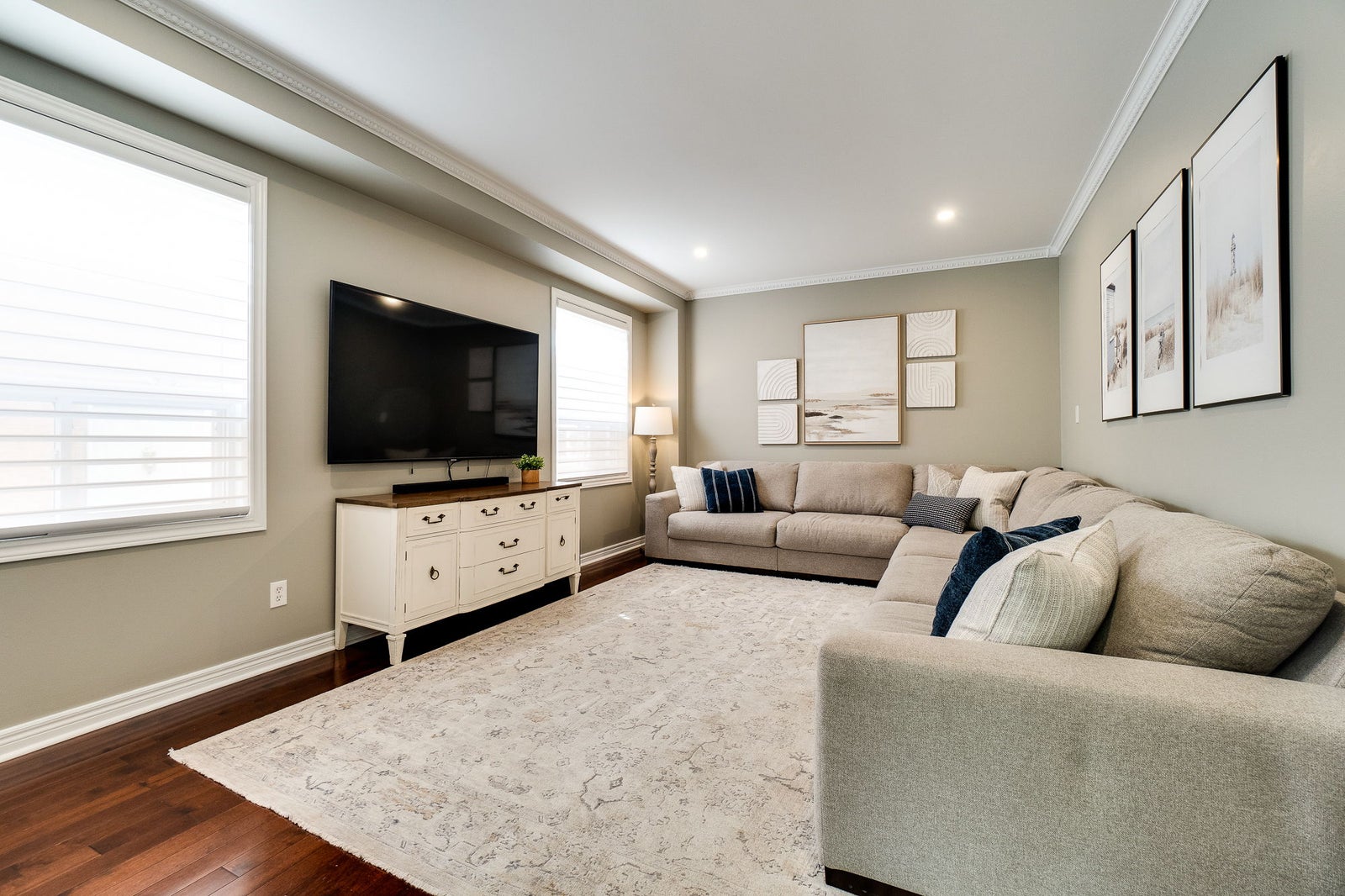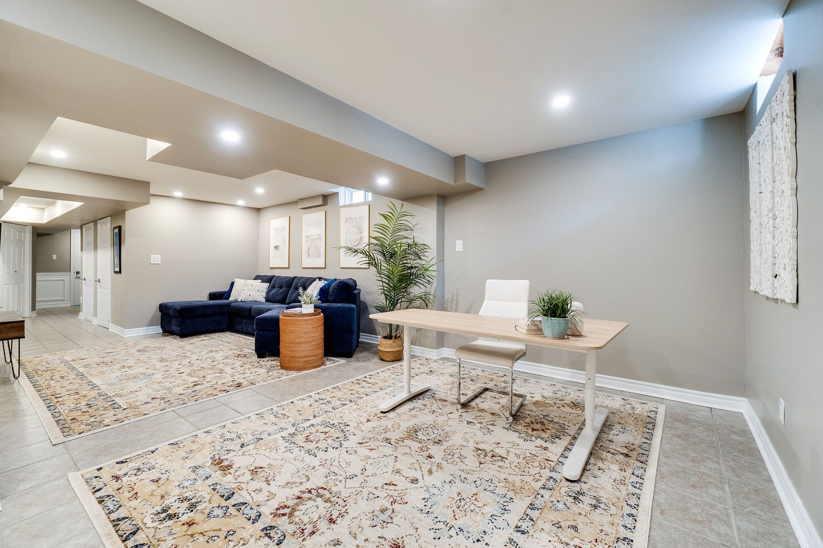 This bright and spacious 4+1 bedroom detached home offers nearly 3,000 sq ft of finished living space on a quiet, family-friendly crescent. The carpet-free main floor features 9’ ceilings, a sleek kitchen with quartz counters and stainless steel appliances, a large dining room with cathedral ceiling (seats 14), and a living area with motorized blinds—perfect for entertaining.