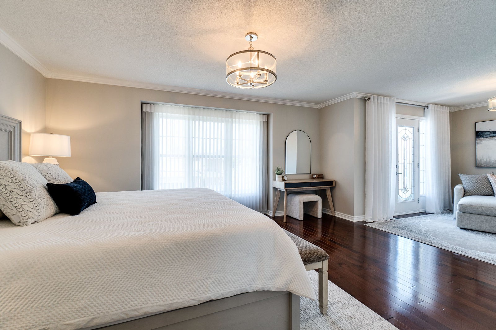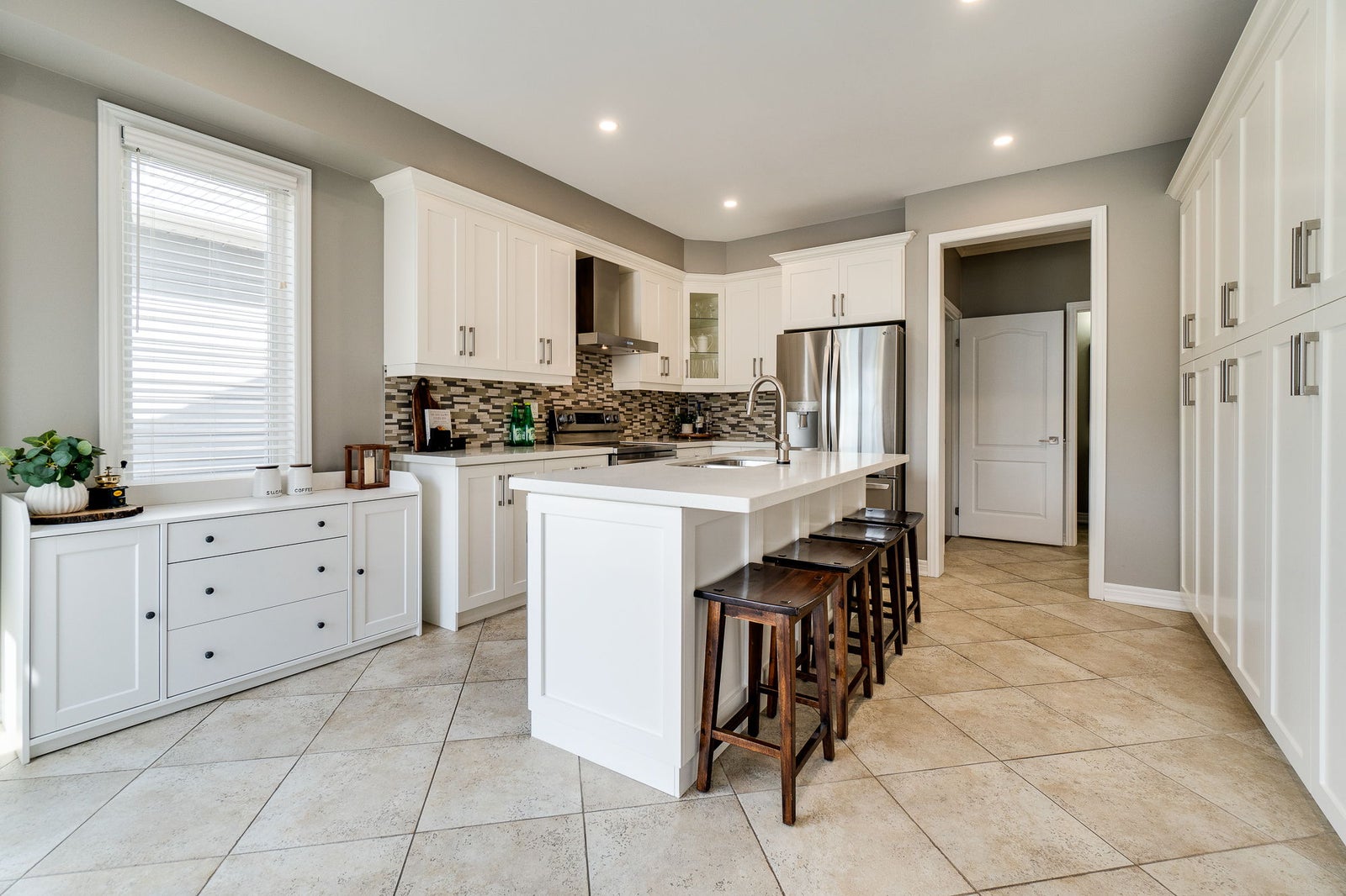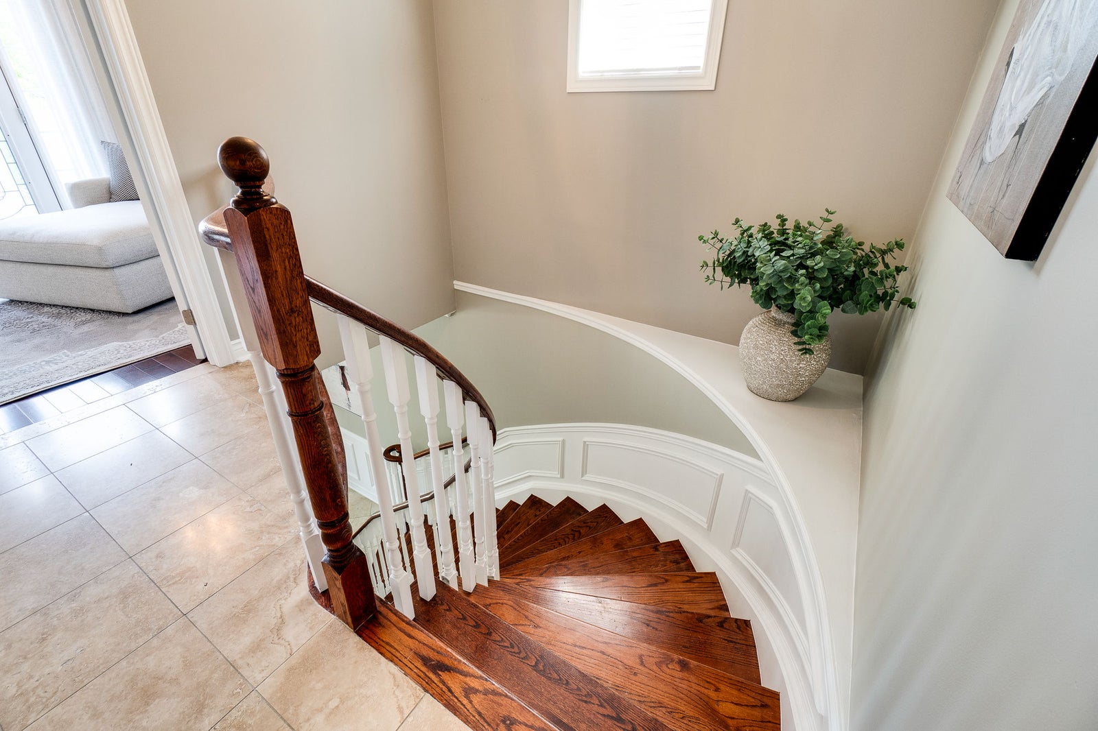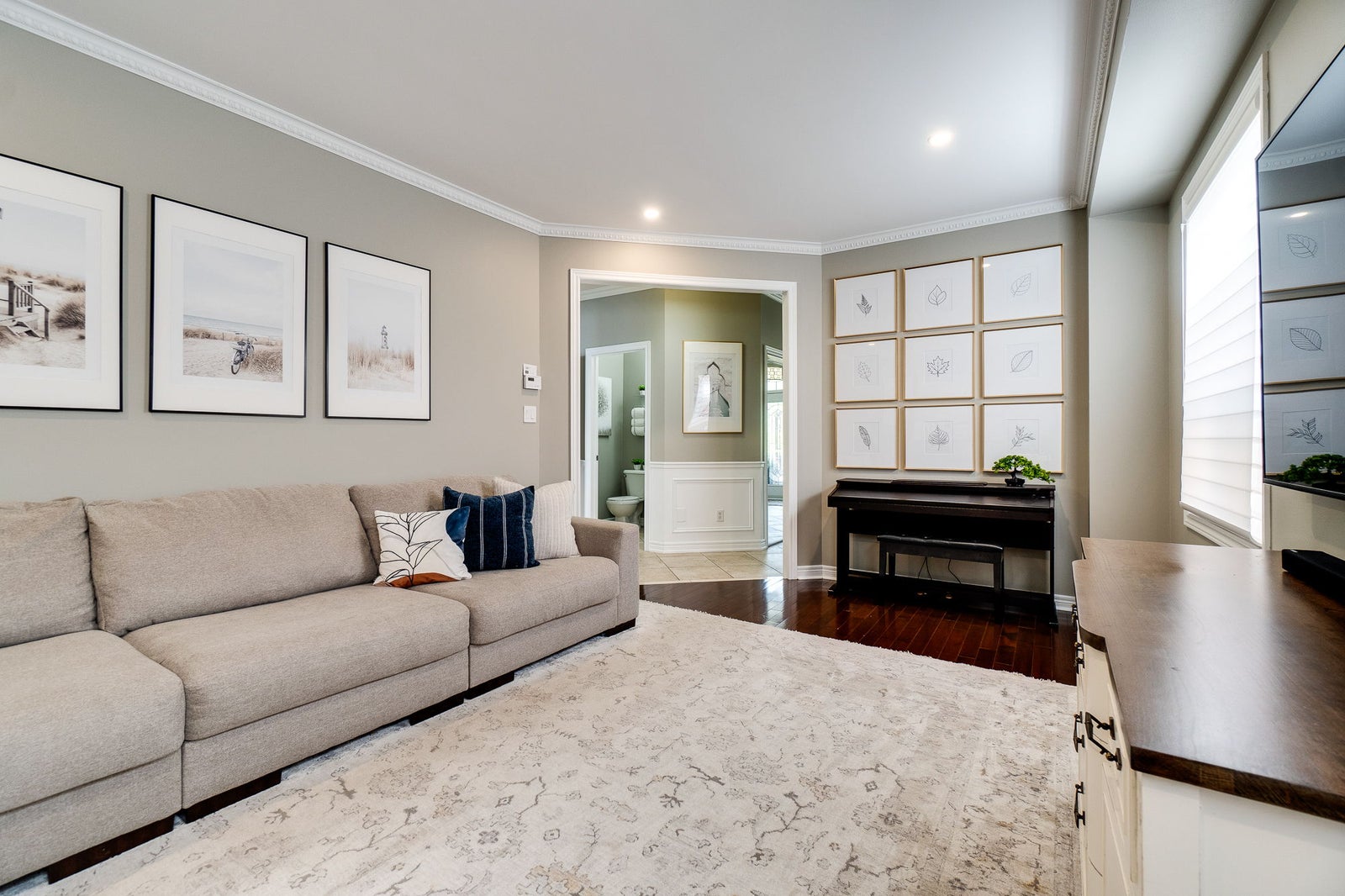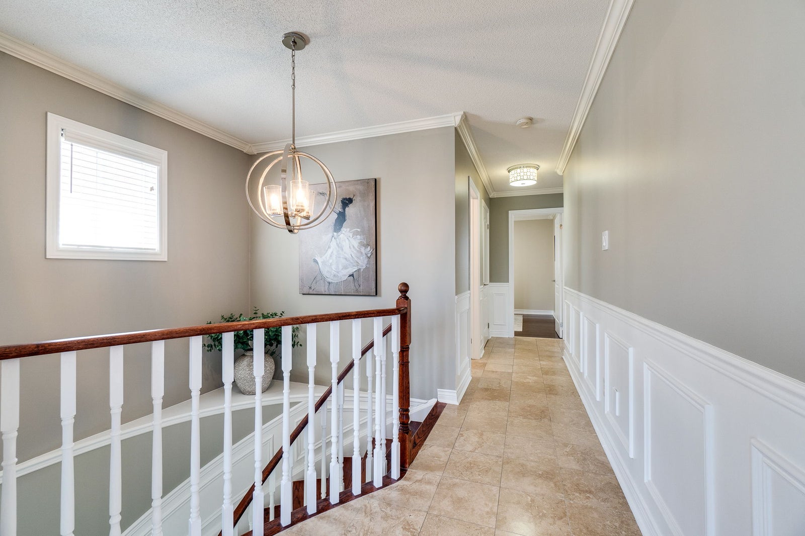 This bright and spacious 4+1 bedroom detached home offers nearly 3,000 sq ft of finished living space on a quiet, family-friendly crescent. The carpet-free main floor features 9’ ceilings, a sleek kitchen with quartz counters and stainless steel appliances, a large dining room with cathedral ceiling (seats 14), and a living area with motorized blinds—perfect for entertaining.