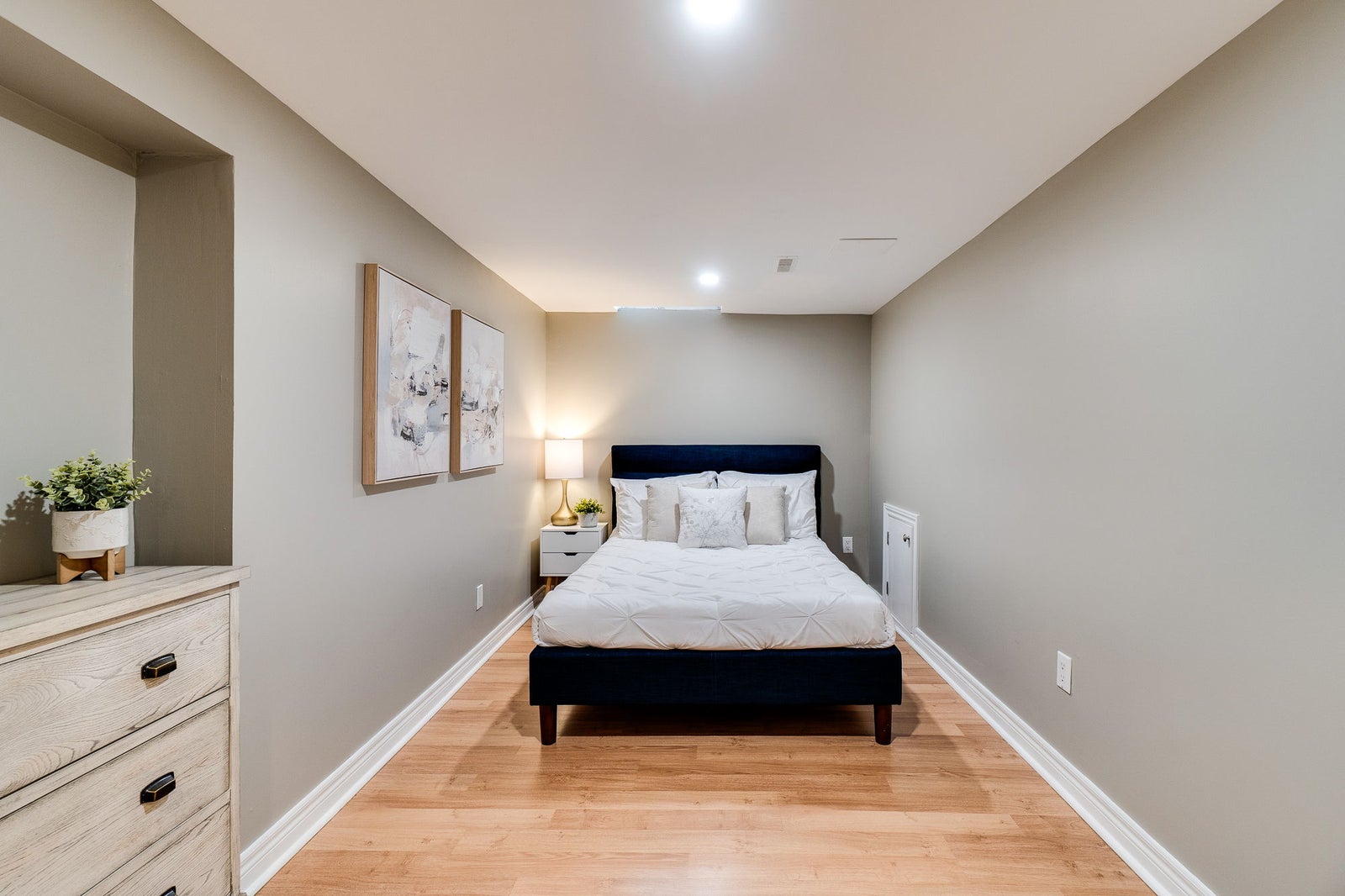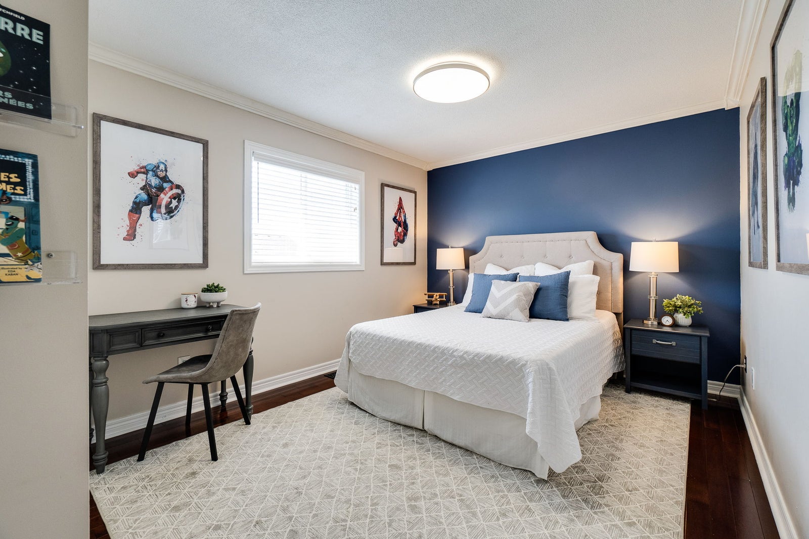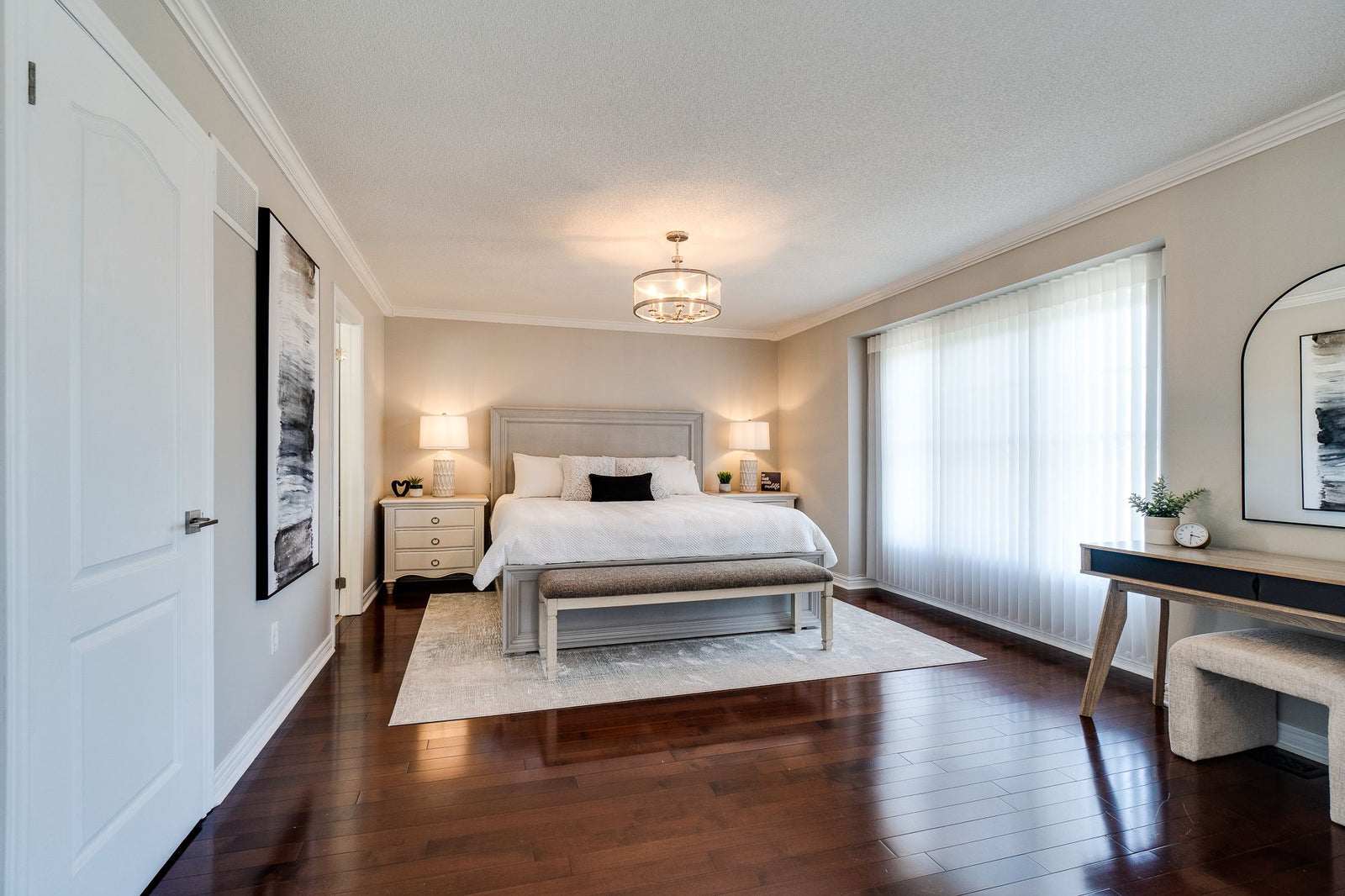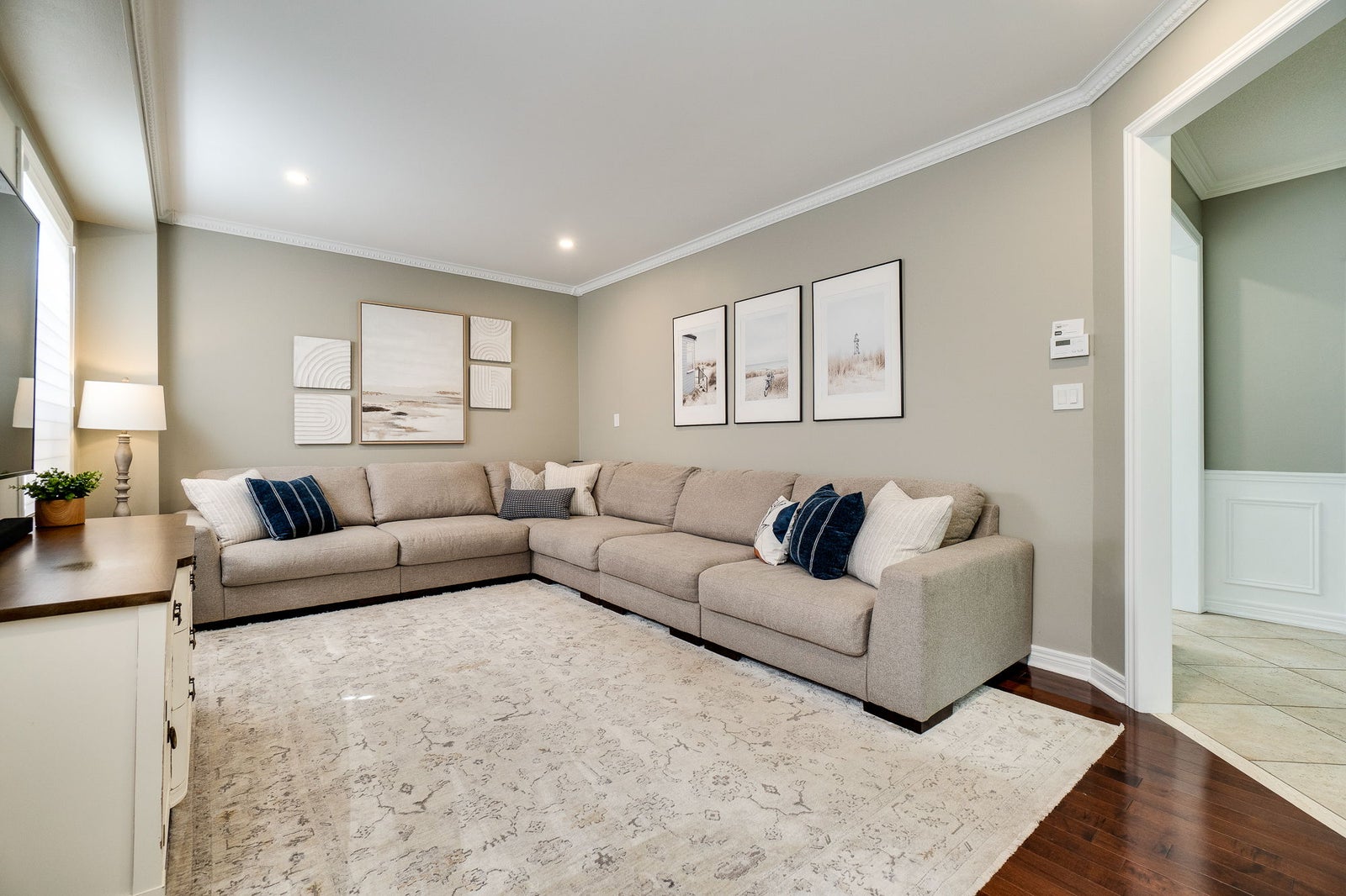 This bright and spacious 4+1 bedroom detached home offers nearly 3,000 sq ft of finished living space on a quiet, family-friendly crescent. The carpet-free main floor features 9’ ceilings, a sleek kitchen with quartz counters and stainless steel appliances, a large dining room with cathedral ceiling (seats 14), and a living area with motorized blinds—perfect for entertaining.
